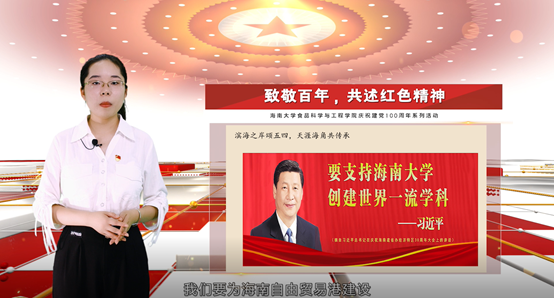 接着讲述了习近平总书记曾给广大青年学生寄语:"坚定理想信念,站稳人民立场,练就过硬本领,投身强国伟业,青春由磨砺而出彩,人生因奋斗而升华。"希望作为海大人,要为海南自由贸易港建设,为ac米兰官方网站创建世界一流学科,贡献青春力量。