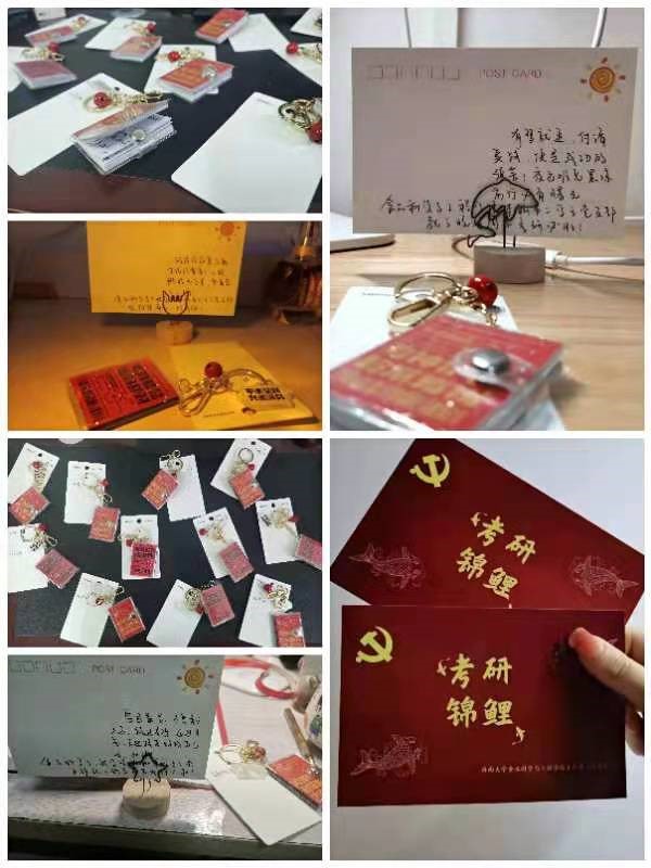 为增强支部考研党员的信心,同时充分调动学生党员为同学服务的积极性,12月12日至13日ac米兰官方网站本科第二学生党支部开展“研途送温暖”活动。活动开始前,支委为考研党员同志购买明信片和纪念钥匙扣。12月12日中午,支部其他党员一起为考研的党员同志书写句句祝福话语,默默派送到每个考研党员同志的宿舍书桌,精心地准备温暖的小惊喜。本次为考研党员同志送温暖活动,不仅以正能量的方式激励了考研学子,鼓舞奋战考研的学子们以积极的心态投入备考冲刺阶段,也彰显了党支部的人文关怀,有助于营造支部团结温馨的氛围。辛苦学习了一天回到宿舍的党员同志们在看到书桌上的纪念品和卡片,纷纷表示感动和感谢!