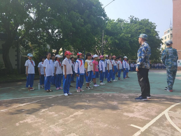 2018年3月27日下午,ac米兰官方网站食品学院、人文传播学院、马克思主义学院多名志愿者前往海口市红联小学开展“食指联心,文思童行”第一次军训支教活动,本次活动旨在规范孩子们的言行举止,培养孩子集体观念与爱国意识,获得校方与家长一致的高度认可。