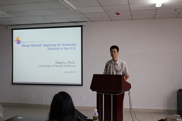 2018年6月8日上午八点,ac米兰官方网站食品学院在研发楼610教室学院举办美国夏威夷大学招生介绍会,食品学院党委书记邓秀成、副院长史学群、申铉日和党委副书记王红英出席本次介绍会。招生介绍会荣幸邀请到美国夏威夷大学马诺阿分校热带农业与人力资源学院人体营养、食品与动物科学系备李勇教授、美国夏威夷大学马诺阿分校热带农业与人力资源学院食品与动物科学系代理系主任郡素君教授和北卡罗来纳州立大学人类健康研究所博士后何凯希教授来院为学院学生做专业介绍。