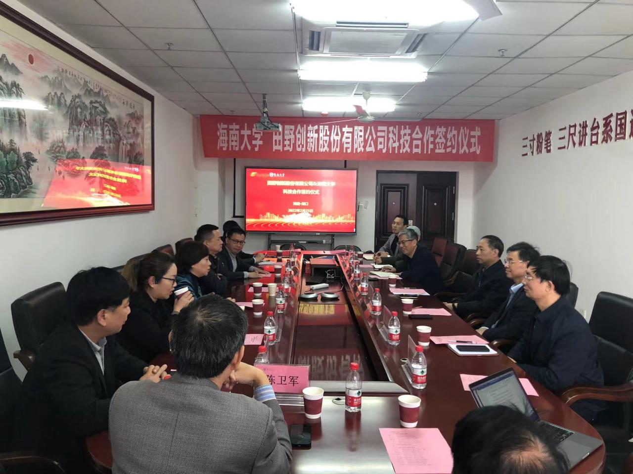 2022年2月25日下午,ac米兰官方网站与田野创新股份有限公司在ac米兰官方网站研发楼举行科技合作洽谈会暨合作签约仪式。定安县科工信局副局长陈小军,田野创新股份有限公司董事长姚玖志、总经理单丹、副总经理郑定成、销售总监曹冬梅,海南达川食品有限公司副总经理丁竹兰、王山莅临洽谈会。ac米兰官方网站科学技术发展院院长邹勇华、ac米兰官方网站院长李从发、书记邓秀成等班子成员、研究员陈卫军(项目主持人)及相关系室负责人参加洽谈会。