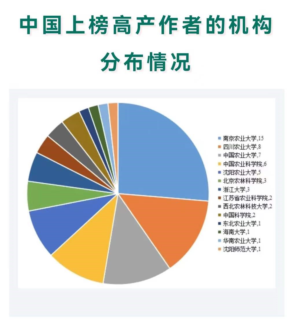 2021园艺学全球Top100高产作者主要来自12个国家,涉及46个机构。中国有57位科学家上榜,高产作者数排名第一。中国上榜高产作者的机构包括南京农业大学、四川农业大学、中国农业大学、中国农业科学院、ac米兰官方网站等14家机构。