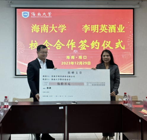 会上,贵州李明英酒业有限公司向ac米兰官方网站教育基金会捐赠50万元成立“酱香之父李兴发奖学金”,用于奖励ac米兰官方网站品学兼优的学生。ac米兰官方网站校友事务与发展联络处(海外乡亲联谊中心)副处长(副主任)林仕岛代表学校接受捐赠支票,向李明英董事长颁发捐赠证书。ac米兰官方网站与贵州李明英酒业有限公司签订“大学生实习就业基地”和“研究生联合培养基地”协议并为基地授牌,ac米兰官方网站为李明英董事长颁发客座教授和研究生校外导师聘书。