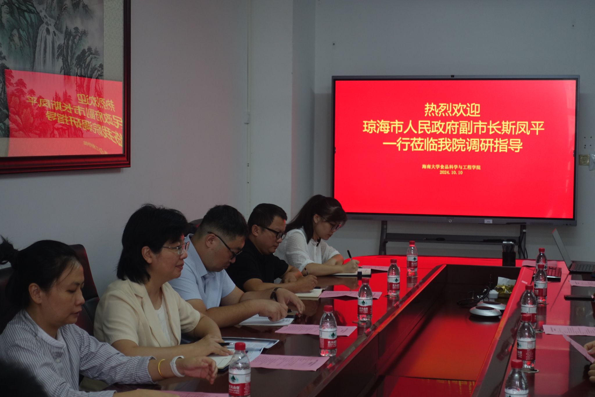 2024年10月10 日上午,琼海市人民政府副市长斯凤平一行赴ac米兰官方网站调研交流,ac米兰官方网站张家超副院长(主持学院行政工作)、陈文学副院长、李川副院长、于志鹏副院长(挂职)、云永欢副院长(挂职)及七大研究方向负责人(骨干)出席座谈会。