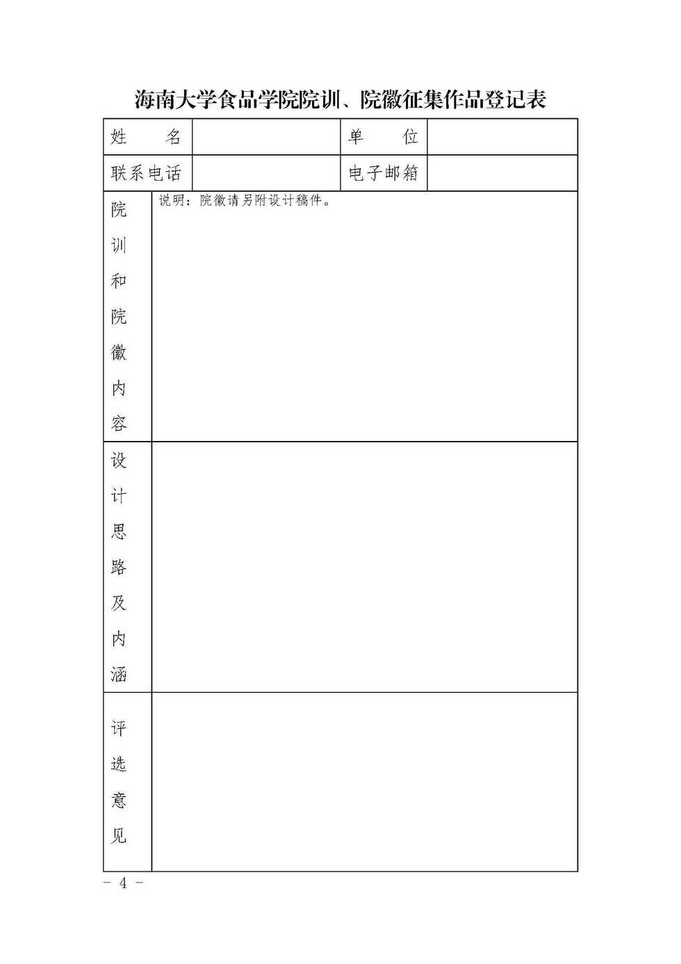 食品学院院训院徽征集活动作品登记表(供参赛者点击下载)