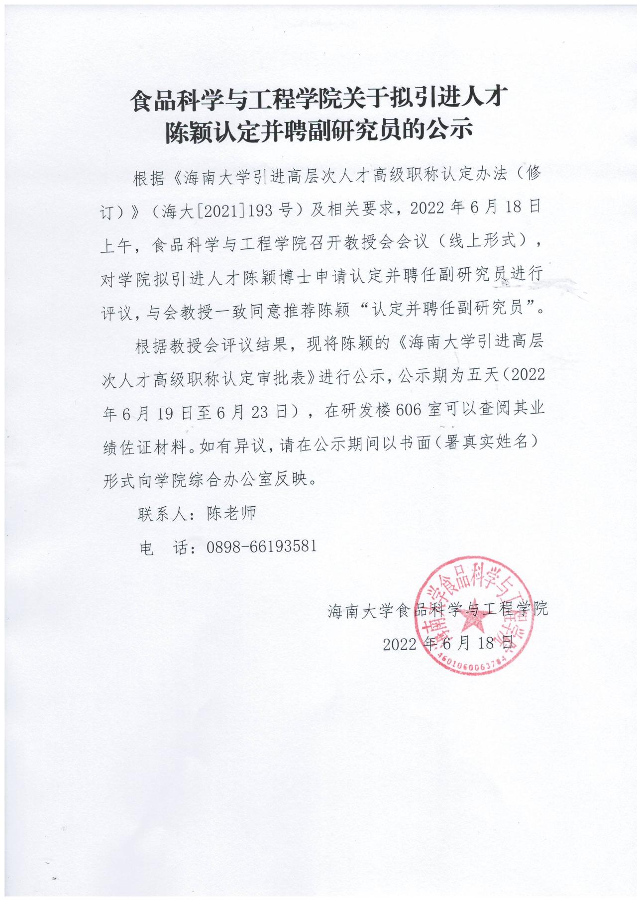 ac米兰官方网站关于拟引进人才陈颖认定并聘副研究员的公示