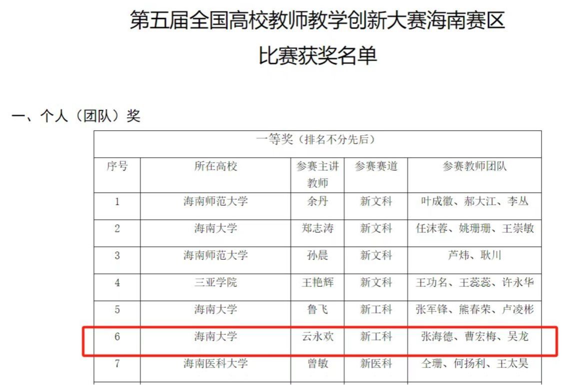 近日,第五届全国高校教师教学创新大赛海南赛区圆满落幕。ac米兰官网云永欢老师参赛,凭借扎实的教学功底、出色的教学设计与稳定的现场发挥,荣获一等奖,实现了ac米兰官网在此类赛事中的历史性突破。