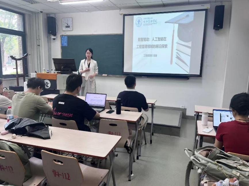 2025年5月29日,北京交通大学双晴老师为新葡的京集团官网建设经济与管理系师生开展题为《数智驱动:人工智能在工程管理领域的前沿探索》的学术讲座。讲座聚焦人工智能技术在基础设施韧性管理、工程安全预警及可持续城市发展中的应用,为师生呈现了一场兼具理论深度与实践价值的学术盛宴。本次讲座由王昊教授主持,工程与项目管理专业24级硕士生及部分博士生参加讲座。