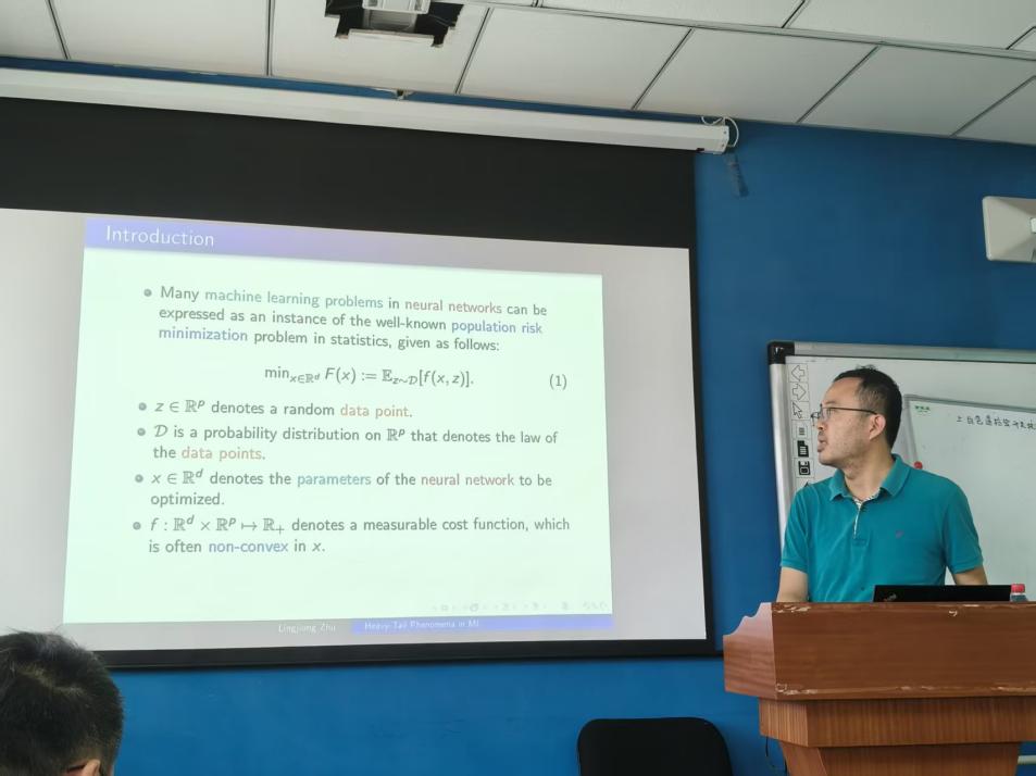 2025年6月24日,新葡的京集团8814登录入口邀请佛罗里达州立大学数学系朱凌炯教授来访交流,并作题为《Heavy-Tail Phenomena in Machine Learning》的学术讲座。本次讲座围绕机器学习中梯度算法的泛化能力与“重尾现象”这一前沿议题展开,吸引了众多对数学、人工智能与优化理论感兴趣的师生与研究人员积极参加。