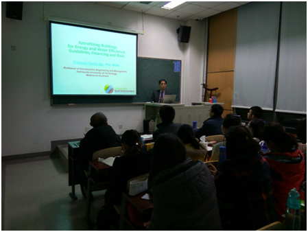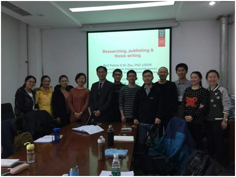 在四次讲座中,Zou教授分别针对本科生、研究生以及学院的青年老师介绍了精彩而充实的工程建设管理前沿知识和方法。系列讲座中不仅包括了“工程管理研究方案与研究方法论”这样的基本研究方法内容,还包括了工程建设管理领域里的研究热点“基础设施风险管理”、“建筑节能减排”、“建筑安全管理”等主题。