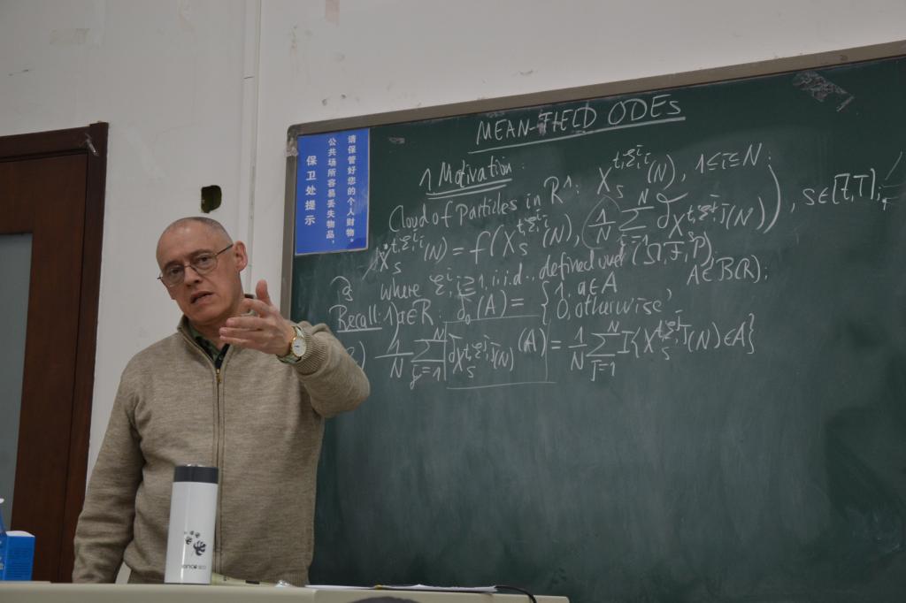 访问期间,2016年12月14日周三下午14:00-15:30, Rainer Buckdahn教授做了主题为《Introduction to First Order Mean-Field Differential Equations》(中文题目《一阶平均场微分方程简介》)的板书讲座。