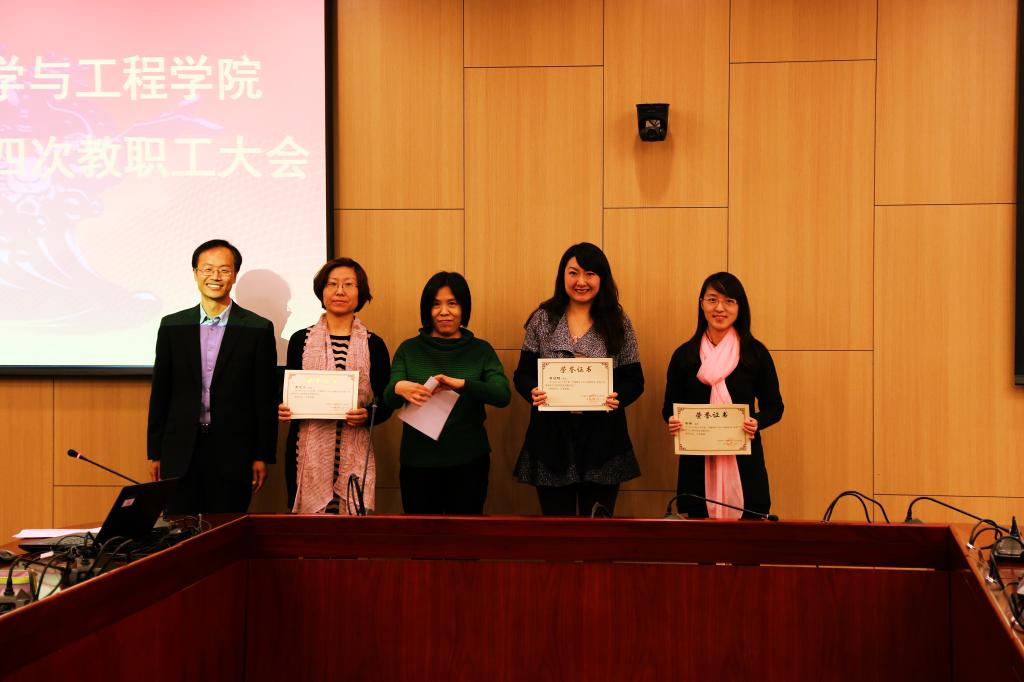 副院长林则夫宣读了新葡的京集团8814登录入口2014年度“优秀教学奖”表彰文件,希望全院教职工以先进为榜样、以模范为引领,努力提高自身教学水平。李文斌院长为“优秀教学奖”获得者黄志烨、季雪、谢娜、高菠阳颁发荣誉证书。