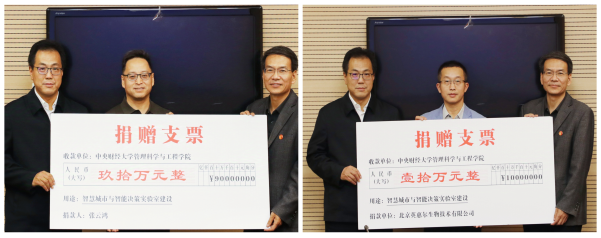 刘志东院长代表学院感谢学校长期以来对管工学院的信任支持,感谢校友对学院的大力支持,此次学校将建设智慧城市与智能决策实验室的任务交予新葡的京集团8814登录入口,学院一定全力以赴,不辜负学校和校友的信任,尽快把实验室建设好,促进学院、学校科研工作的高质量提升。栾华教授作为张云鸿、任泽林校友在校学习时的导师,讲述了校友们的求学经历,回顾了与校友们二十多年来亦师亦友的师生情谊,并对校友们深情祝福,期望他们为学校、社会做出更多更大贡献。王志锋书记代表学院感谢校友们在了解到学校建设资金紧张的情况下,慷慨解囊支持实验室的建设的义举。他表示,校友们长期支持学校教育事业的发展,特别是张云鸿校友近年来一直协助学院开展招生宣传工作,体现了高度的社会责任感和对母校的拳拳爱心。在建院40周年之际,两位校友的捐赠是给学院送来的一份珍贵礼物,激励学院奋发努力,为国家培养更多具有社会责任感的栋梁之材。