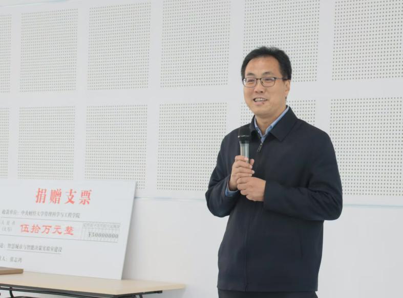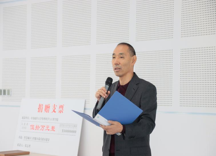 刘志东院长感谢学校的信任支持,将建设智慧城市与智能决策实验室的任务交予新葡的京集团8814登录入口;感谢张志鸿校友在了解到学校建设资金紧张的情况下,慷慨解囊支持实验室的建设。他表示,张志鸿校友长期支持学校教育事业的发展,体现了高度的社会责任感和对母校的拳拳爱心,后续学院将用好善款,落实好实验室建设工作,让捐赠资金发挥最大效用。他勉励在座的各位同学向以张志鸿校友为代表的优秀学长学习,在未来的日子里努力学习、好好工作、报效祖国、回馈社会。