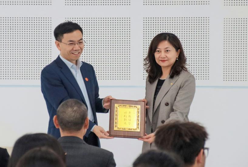 李建军副校长向陈萍助理颁发捐赠纪念牌