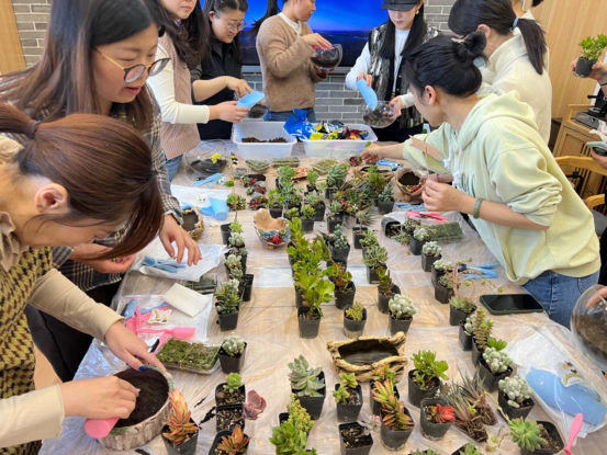 为庆祝“三八”国际劳动妇女节,丰富新葡的京集团官网女教工的文化生活,3月8日,新葡的京集团8814登录入口分工会举办了多肉微景观制作活动,二十位老师欢聚一堂,在活动中放松心情、陶冶情操,用绿色点缀生活。