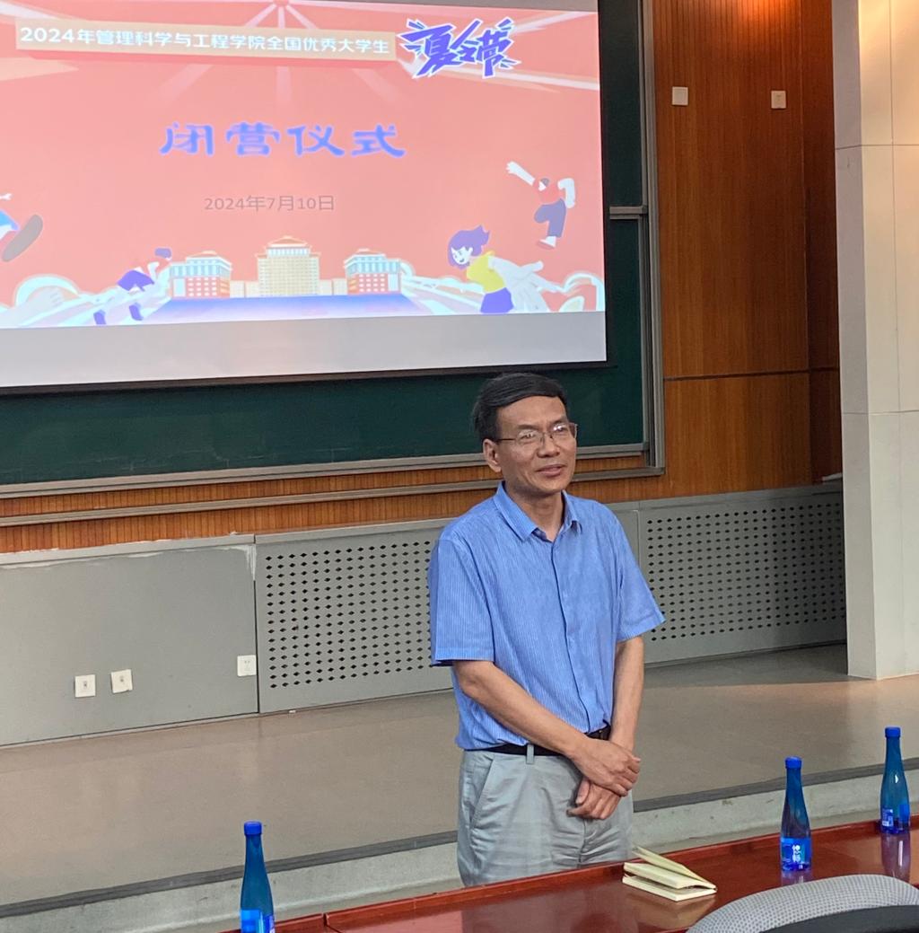 7月10日下午17时许,夏令营闭营仪式在学院4号楼107报告厅举行,学院党委书记王志锋出席并发表总结讲话。王志锋首先祝贺营员们顺利完成夏令营的各项考核,更进一步接近自己的人生目标。他强调要珍惜夏令营提供的交流机会,并向营员们说明选择中财大新葡的京集团8814登录入口的理由:一是地域优势,中财大地处北京,与共和国同龄,享有得天独厚的地理优势;二是学院学科优势,学院经济学和管理学并重,交叉学科背景浓厚,学院始终坚持“高质量发展”和“高质量就业”并重,有助于培养数字化转型大背景下的高精尖人才,帮助同学们完成人生路径的选择;三是新葡的京集团官网海归教师和国际合作项目的数量在全校名列前茅,校友网络遍布世界各地,能为同学们提供更多的交流机会,开阔同学们的国际视野。最后,王志锋希望同学们在人生的赛道上不断拼搏,实现自己的理想。