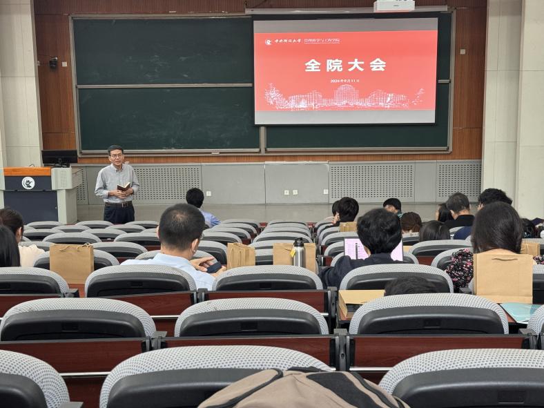 院长刘志东首先传达了吴国生书记、马海涛校长在2024年秋季学期工作布置会上的讲话精神,随后总结回顾了上半年学院取得的工作成绩,重点围绕学科建设、科研工作、人才培养、师资队伍建设、招生工作、实验室改造、国际合作等方面,通过纵向、横向数据对比分析,详细剖析了学院现状和制约发展的短板。同时对2024年秋季学期各项重点工作进行了部署安排,他强调学校正在加快推进高质量发展,推动高水平大学建设,对学院的各项工作提出了更高的要求,新的学期,希望全院教师勠力同心、奋发有为,共同做好迎接本科教育教学审核评估、新一轮本科和研究生招生宣传、访企拓岗促就业、实验室建设、院庆40周年等多项重点工作,强调40周年院庆是学院发展历程中的重要节点,也是展示学院办学成果、凝聚师生力量、推动学院发展的重要契机。要求全院师生要高度重视,积极参与,以饱满的热情和务实的作风,共同为院庆活动的成功举办贡献力量。全面展示学院在学科建设、人才培养、科学研究、社会服务等方面的丰硕成果,进一步激发全院师生的自豪感和使命感。