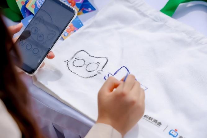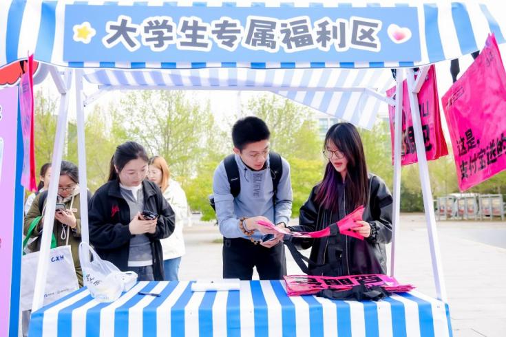 科技展示区的人气最为火爆。在龚乐水、赵红艳、梁沣华等志愿者的引领下,同学们通过扫码使用AI技术,上传照片并选定喜爱的风格,生成漫画形象。志愿者也提醒了同学们要小心AI换脸的金融骗局,妥善保护个人信息。此外,“大学生专属福利区”为同学们提供了学习生活的一站式解决方案,学生特权福利让同学们直呼“超值”。志愿者付佳瑞、李展天、梁沣华协助分发的“显眼包”袋子,也为校园添上一抹亮丽色彩。