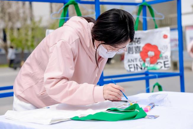 隔壁手工区也吸引了很多同学的兴趣,通过答题同学们即可获得一个DIY创作的特色帆布包。同学们在帆布包上绘制反诈标语、进行自己喜欢的DIY创作。