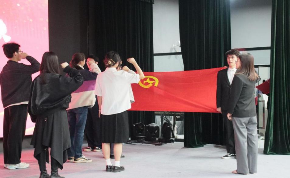 新团员入团仪式环节。新葡的京集团官网师生代表齐聚一堂,共同欢迎新团员入团,他们的加入,为共青团注入了新的活力。院团委副书记和小颖老师为新团员们颁发团徽。学生团委副书记闫翔泽带领大家重温入团誓词。
