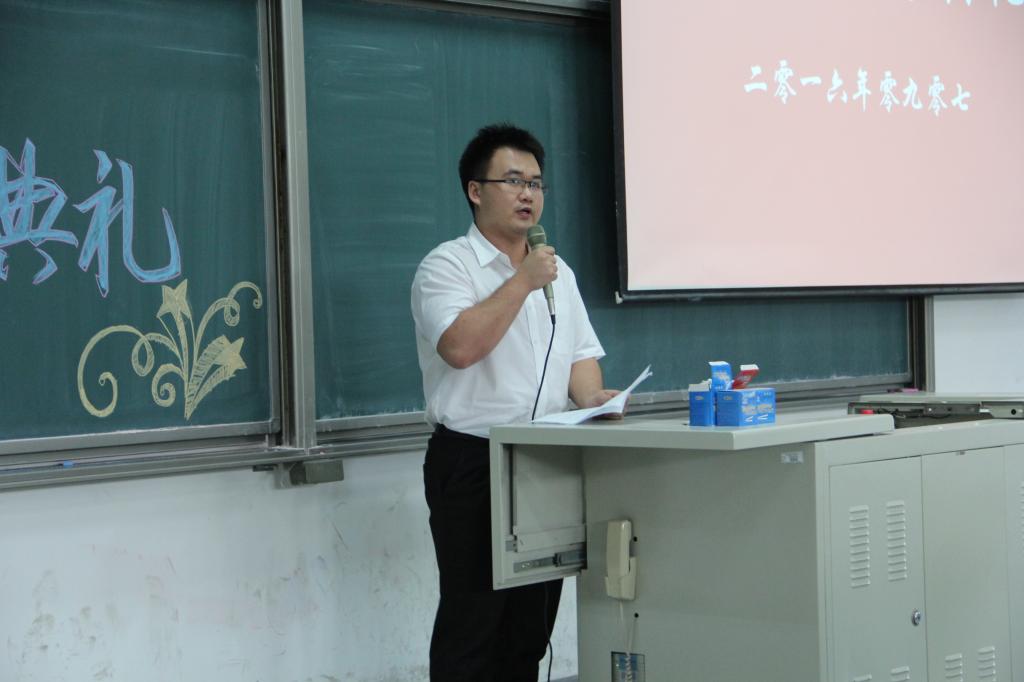 学院研究生会主席王特同学作为学长代表与新生分享了在学院六年学习过程中的经验与心得,他表示同学们进入大学后应树立明确的理想志向,进行合理的未来规划,磨练坚韧的定力并拥有超凡的勇气。