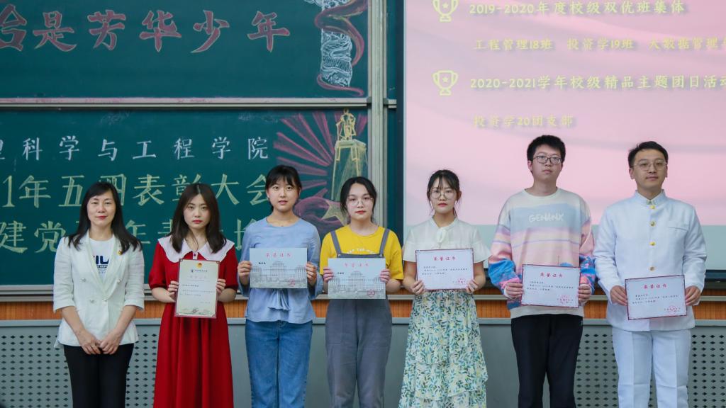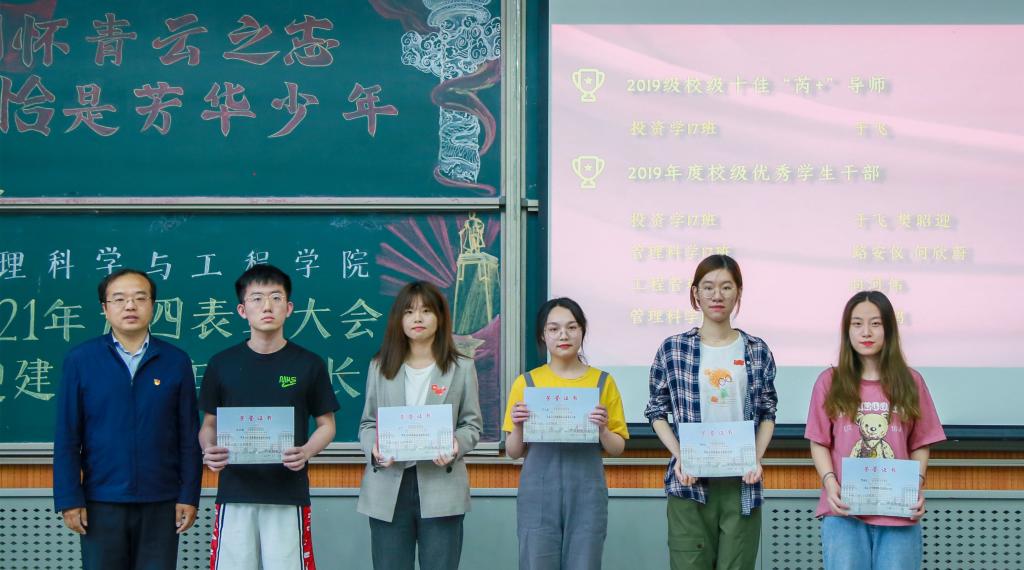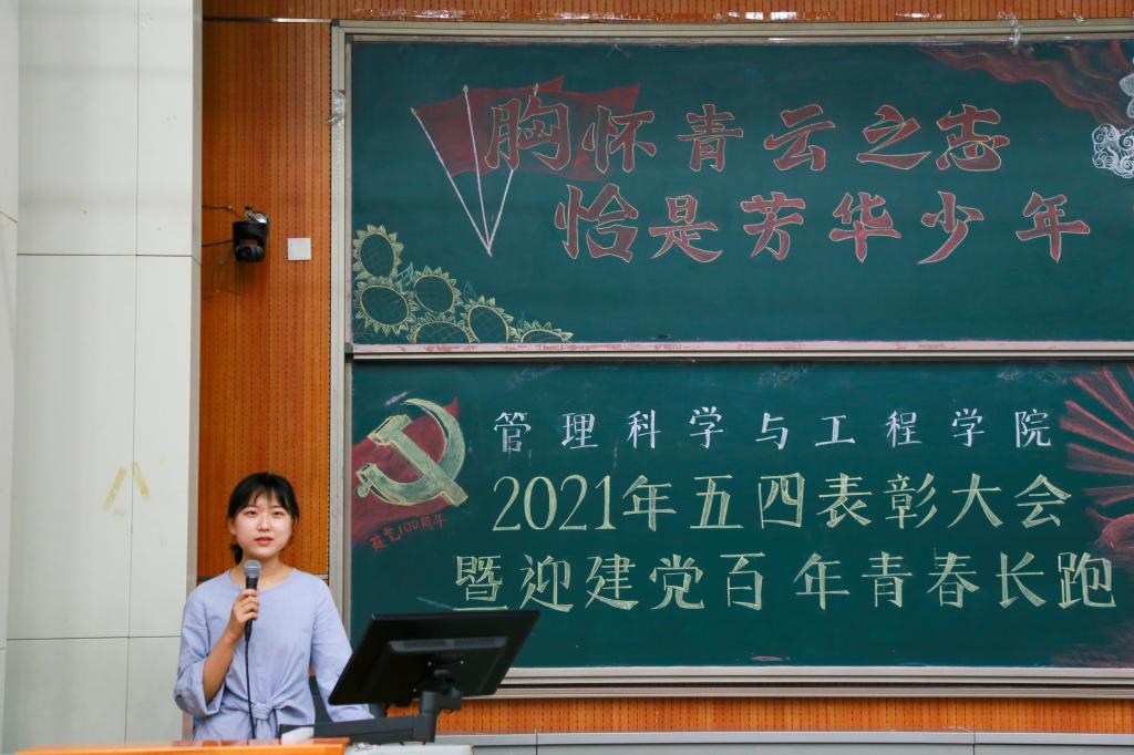 在五四青年节之际,为深化学习贯彻习近平总书记在纪念五四运动100周年大会上的重要讲话精神,学习传承五四精神,加强青年学生党史学习教育和社会主义核心价值观培育,展现学院青年风貌,5月12日下午两点,“胸怀青云之志,恰是芳华少年”新葡的京集团8814登录入口2021年五四表彰大会暨迎建党百年青春长跑活动在学院4号楼107隆重举行。学院党委书记姜涛、院长刘志东、党委副书记贾传亮、学院党建与业务创新部主任、学生工作办公室主任、17级本科生辅导员薄璐、18级本科生辅导员马冰出席大会。大会由学院团委书记高舒娅主持。