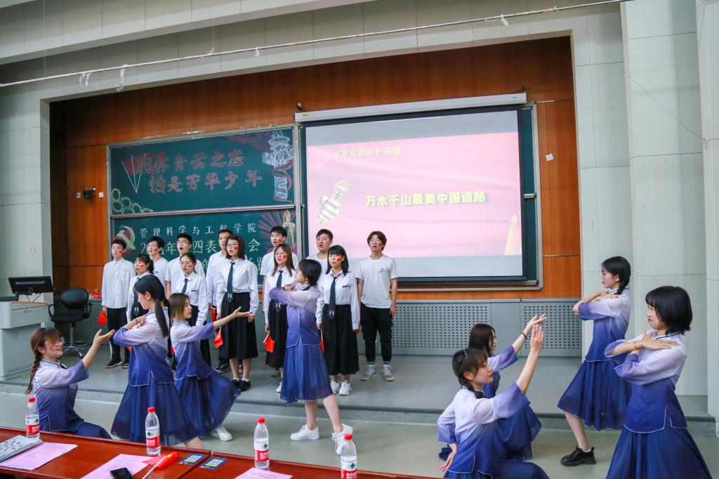 学院团委书记高舒娅主持、与会者齐唱团歌