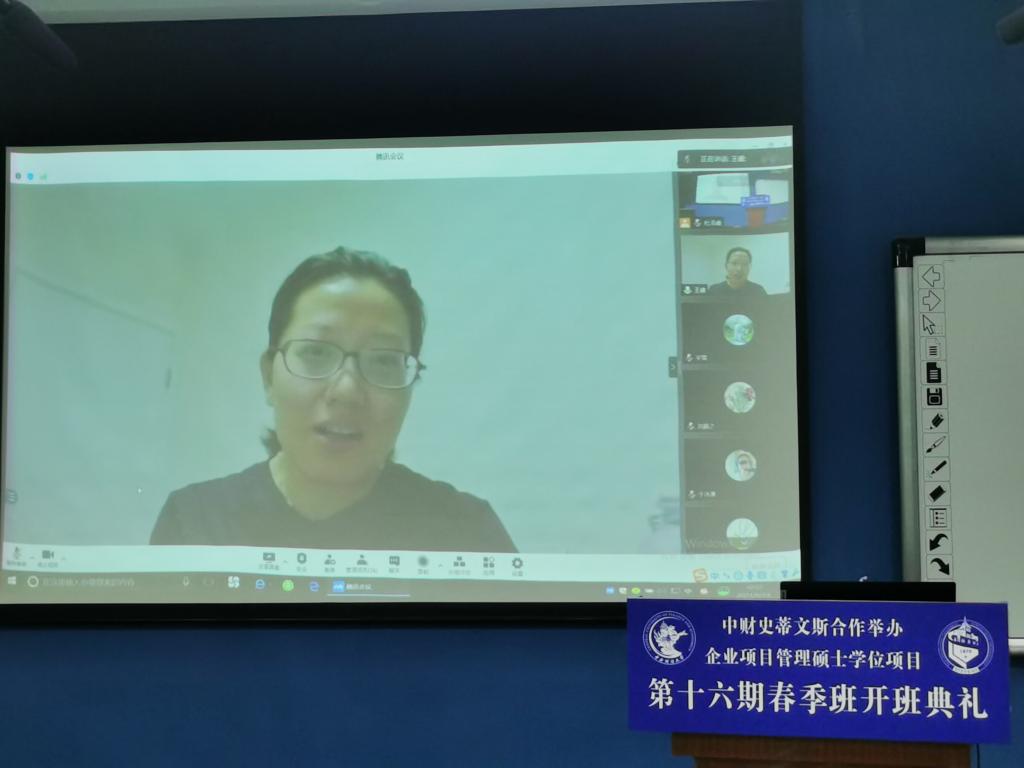 在接下来的致辞中,学院党委书记姜涛对十六期春季班同学们表示了热烈的欢迎。姜涛强调,作为新葡的京集团8814登录入口硕士层面唯一的中外合作办学项目,中财史蒂文斯企业项目管理硕士项目拥有一支高水平的授课教师团队,外方教师全部为史蒂文斯理工学院的资深教师,中方教师全部具有海外留学背景,同时学院下设国际合作交流办公室,专职负责项目的日常管理工作,保证了较高的项目管理水平。姜涛书记谈到全球新冠疫情对项目的授课和管理造成的挑战,她告诫同学们要积极适应新的学习模式,主动改变自我迎接挑战。同时,姜涛鼓励同学们作为中财校友,在工作和学习之余积极参加学校和学院的各项活动,学会利用学校的优质资源,体验丰富多彩的校园生活,感受校园文化氛围。