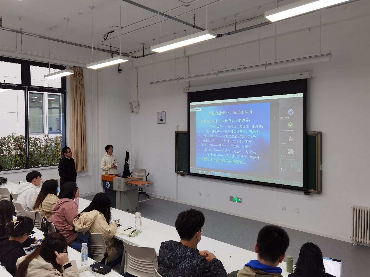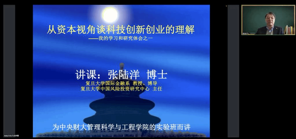 开班仪式后,应刘志东院长邀请,复旦大学国际金融系教授、博士生导师,复旦大学中国风险投资研究中心主任张陆洋教授为同学们进行了题为《从资本视角谈对科技创新创业的理解》的主题讲座。张陆洋教授首先对自己在创新创业领域的经历与成果进行了简要介绍,并基于《科技创新创业基础》这一学术专著展开了本次讲座的内容。张陆洋教授指出,想理解科技创新创业,硅谷模式是一个很好的切入点。硅谷通过创造一个模式、设计两个机制、解决三个关键问题、形成和完善四个要素、构建五大法律政策体系,最终使其成为了全世界创新创业与风险投资的中心。在对硅谷模式进行详细剖析后,张陆洋教授对《科技创新创业基础》学术专著的全书结构与重点内容进行了介绍。《科技创新创业基础》旨在以建设创新性国家发展战略为目标,推进科技创新创业,全书包括科技创新创业商业计划、科技创新创业者和团队建设、科技创新创业的融资、科技创新创业生态系统、科技创新创业企业的创建和治理机制、科技创新创业过程风险分析、科技创新创业技术经济学、科技创新创业项目实践和典型案例等章节,重点讨论了基于创新创业过程的微观现金流分析、企业创业成长的阶段特性与成长边界、科技企业创业过程中的动态风险、科技创新创业过程中的知识产权保护、科技创新创业驱动经济发展等内容。最后,张陆洋教授结合我国现实与国际形势,面向未来,对我国建设创新型国家之路进行了展望。在主题讲座结束后,现场数名实验项目学员结合讲座内容与个人发展与张陆洋教授进行了深入交流,同学们均受益匪浅。