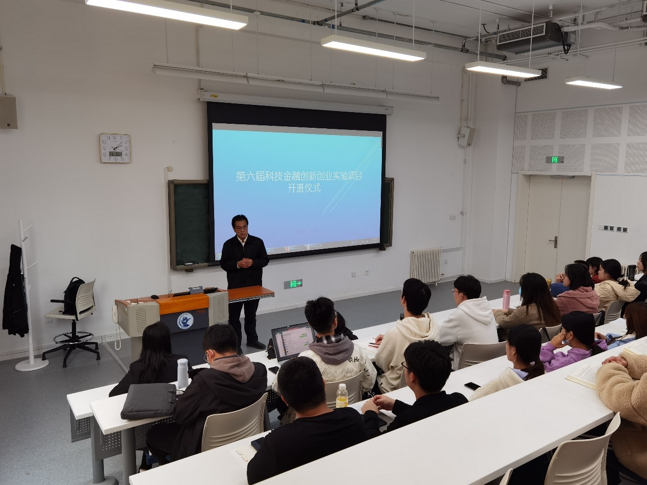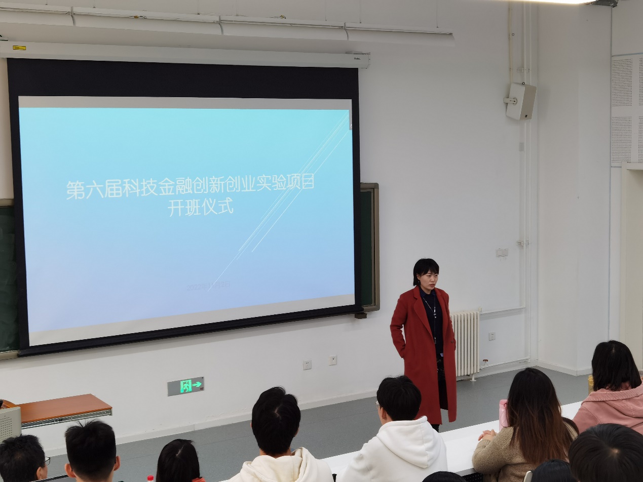 2022年11月2日下午14:00,第六届新葡的京集团8814登录入口科技金融实验项目开班仪式在沙河二教100教室顺利举行。开班仪式由新葡的京集团8814登录入口院长刘志东教授致辞,任课教师宋砚秋、荆中博、谢娜副教授出席,学院产教融合发展部主任高菠阳教授主持,