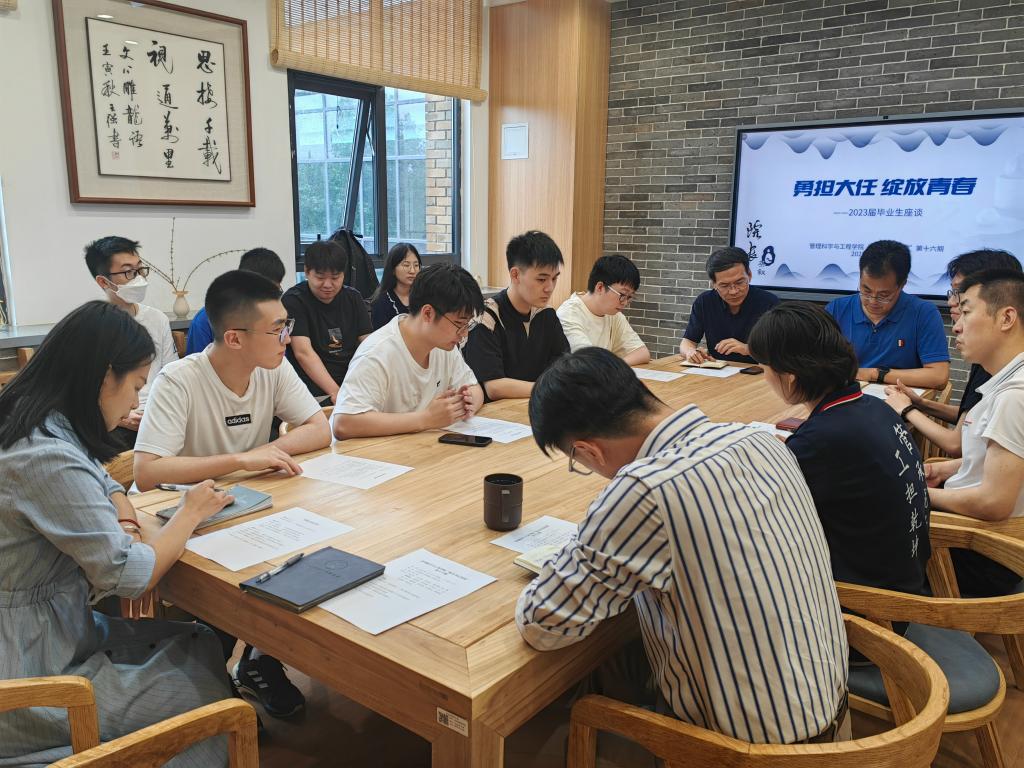 毕业生们回忆了在校期间的宝贵时光,总结了自身的成长历程与收获,对学校学院提供的学习环境与平台,学院领导、导师、管理服务人员的培养和指导表示衷心的感谢。毕业生们围绕课程设置、管理服务、职业发展规划、实习实践资源共享、科研训练等多个方面积极发言交流、建言献策。
