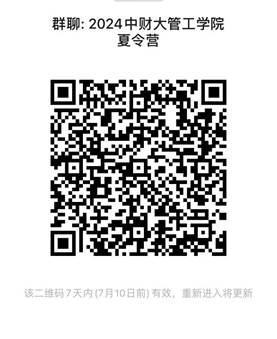 3、确定入营同学请在7月4日12:00前扫描下方二维码加入微信群“2024中财大管工学院夏令营”。