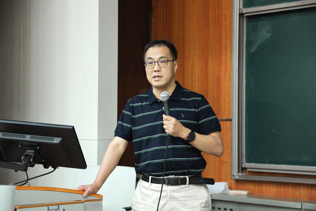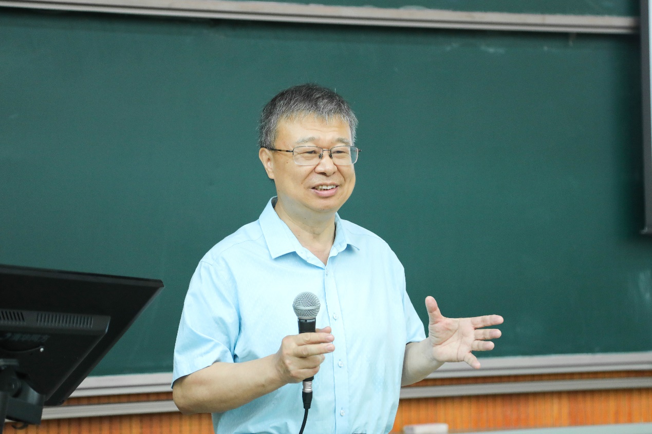 开营仪式结束后,学院安排了两场内容丰富的学术讲座。首场讲座,中国科学院数学与系统科学研究院杨晓光研究员以“从复杂性看社会系统管理:与复杂共存 顺势而为”为主题进行报告分享。他首先介绍了社会系统是最为复杂的系统,社会系统的复杂性源自系统内外部作用的时变性、系统演变、信息偏差,随后他从“时代呼吁从复杂性视角进行社会系统管理报告内容极富深度”“从复杂性视角看社会系统管理”等方面进行详细解读,最后围绕“社会系统管理需要博弈思维”主题讲解如何做好社会系统管理,整场报告极具深度和学术价值。