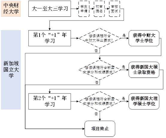 1.第1个“+1”年中,在新国大修读的课程能够满足中财大工程管理专业的毕业要求,顺利获得中财大工程管理专业管理学学士学位;