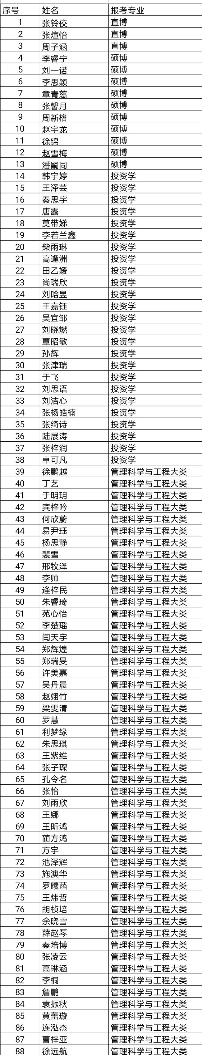 新葡的京集团8814登录入口管理科学与工程类专业学生分流录取结果公示
