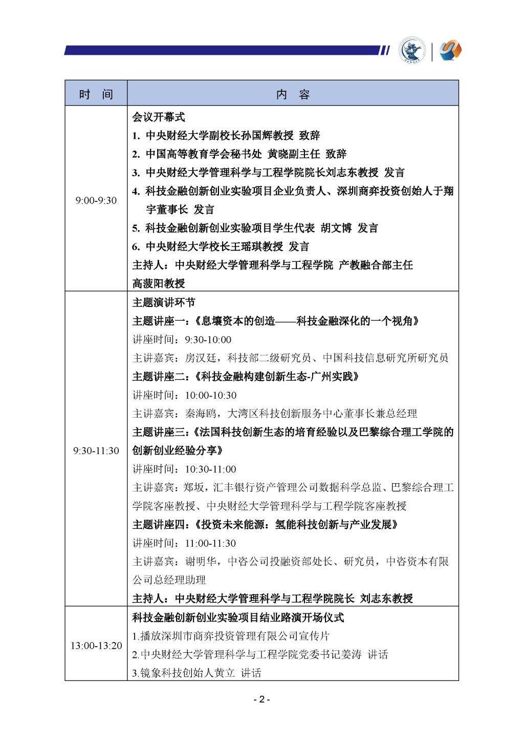2022科技金融创新创业论坛暨新葡的京集团8814登录入口“科技金融创新创业实验项目”五周年庆祝活动会议议程