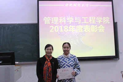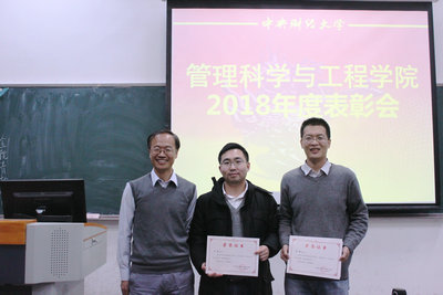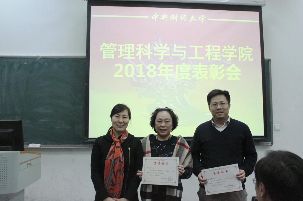 大会第三项是优秀教职工表彰。党委副书记贾传亮宣读学院表彰文件。祖垒、宿洁、井帅、荆中博获得优秀教学奖;井帅、李慧嘉、汪涛获得优秀科研将;马继荣获得优秀辅导员奖;高婷、王优容获得班主任工作成绩突出奖;陈俊华、刘杰获得优秀管理服务奖。