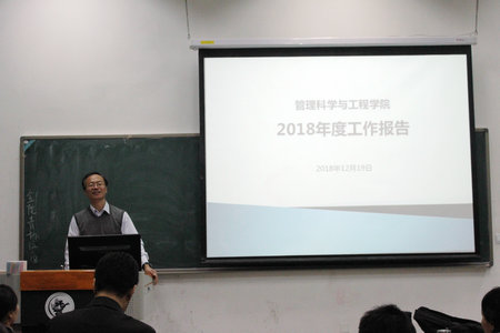 院长李文斌代表学院班子,分别从人才培养、学科建设、科学研究、国际交流与合作、合作办学以及学院财务工作等方面详细、全面介绍了学院一年来的工作情况,对学院教职工坚守岗位、兢兢业业、奋发有为的工作、学习状态表示赞赏。在总结2018年工作之后,院长指出,2019年学院将会在学科建设、本科生培养、研究生培养等方面加大工作投入,争取实现新的进步。院长表示,一年来的工作成果是全院师生共同努力的结果,得益于学院班子的精诚合作,更离不开老师们的全力支持和配合。